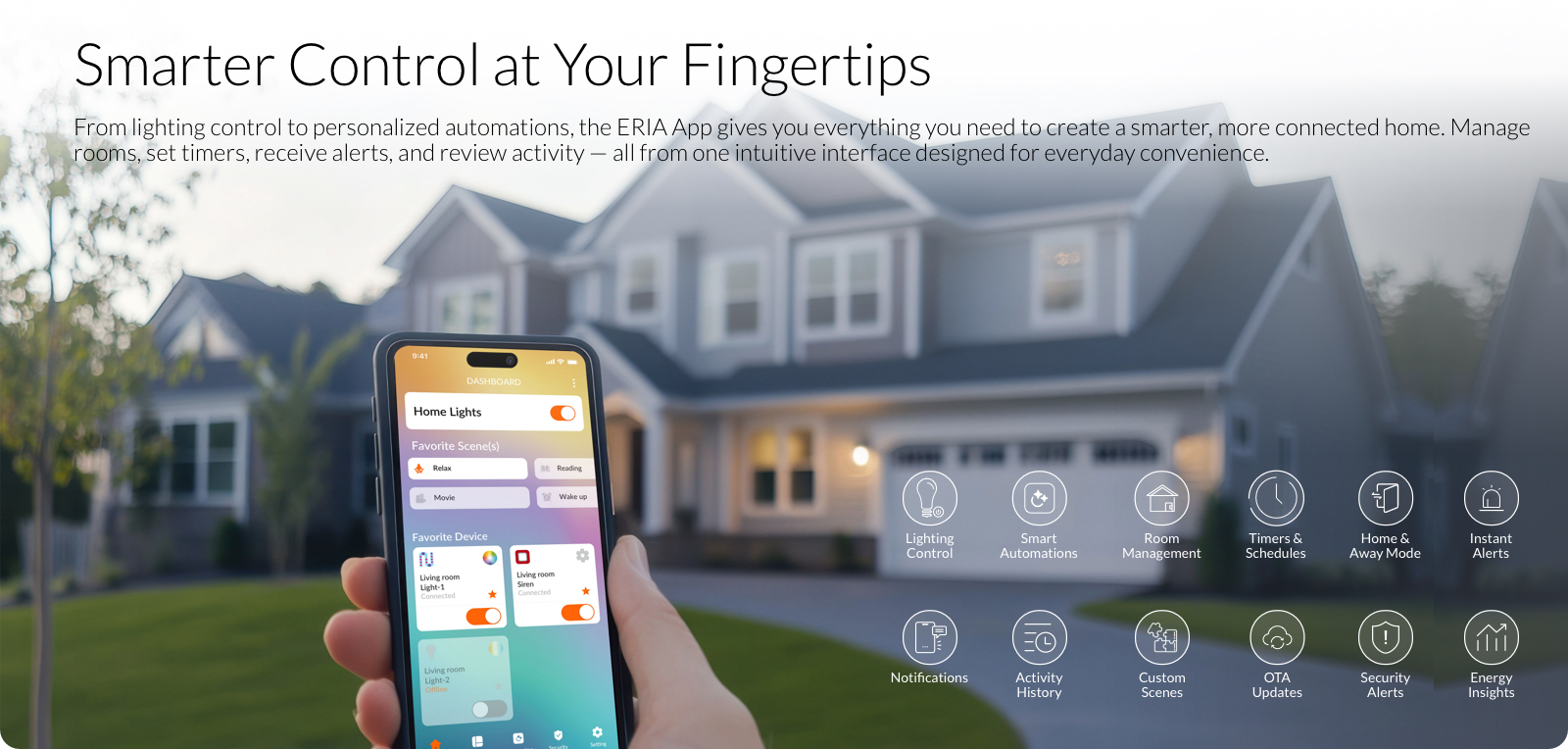 The ERIA App puts complete smart home control in the palm of your hand. From automating routines to managing devices remotely, it’s built for simplicity, convenience, and everyday ease. Enjoy seamless control and a smarter living experience — all in one app.
