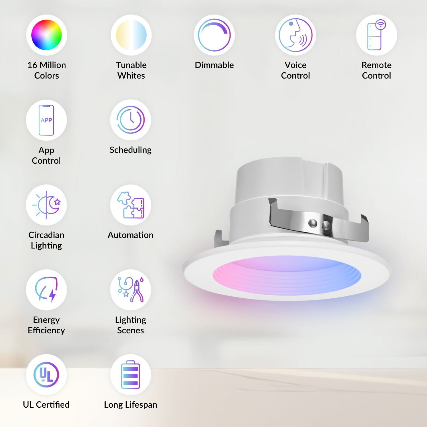Easily control your smart lighting without rewiring your home. Whether you prefer using an app, setting up automated schedules, smart switches, or just your voice, you can create a cozy, energy-efficient space that fits your lifestyle. Enjoy the convenience and comfort of a truly personalized home.