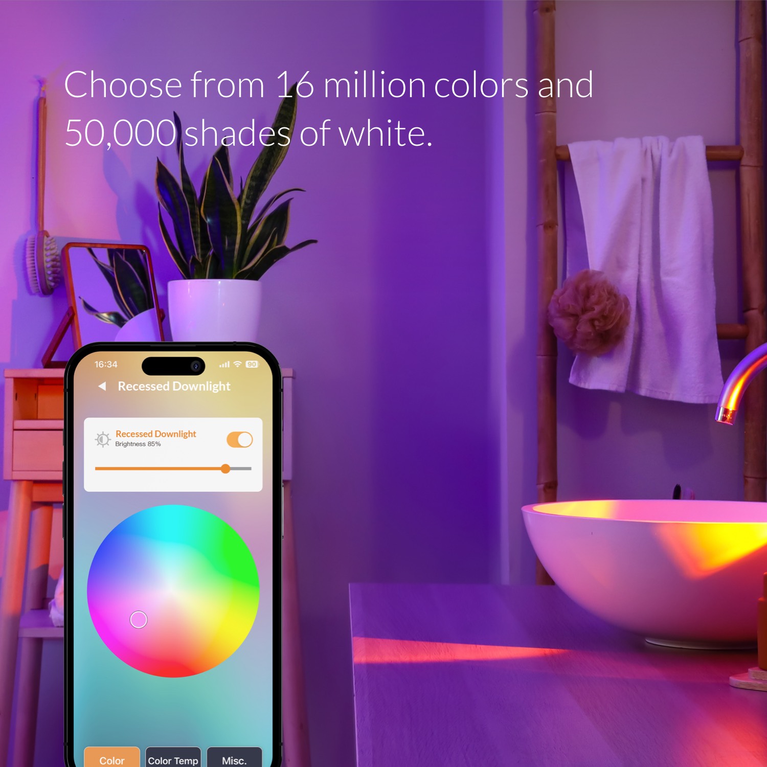 • Choose from 16 million colors to set the perfect mood.