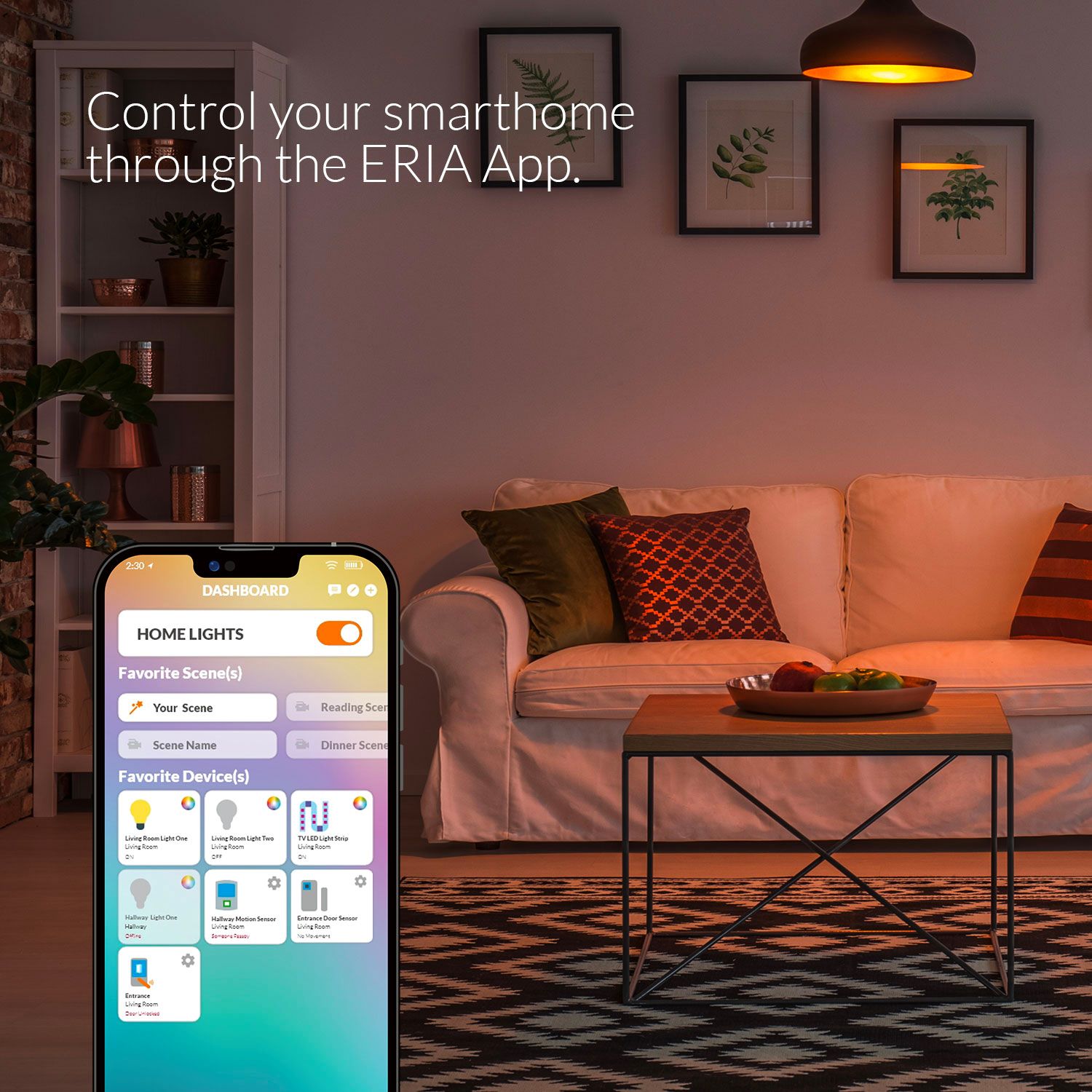 Easily save your preferred lighting settings and activate them with a single tap using the ERIA app.