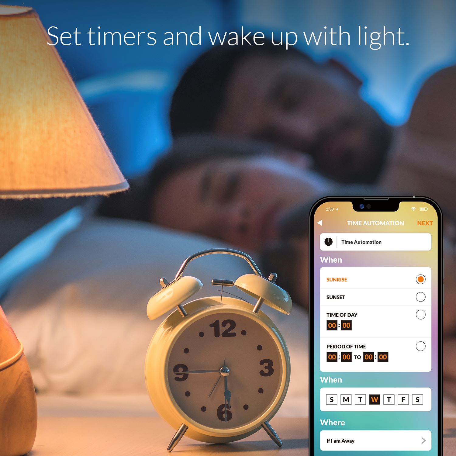 Schedule your lights to gently wake you up in the morning, or for added security, use timers to make it look like someone is home even when you’re away.​