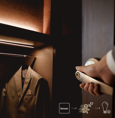 Add ERIA sensors to automatically light up the room when you enter and turn off the lights when you leave, for convenience and energy savings.