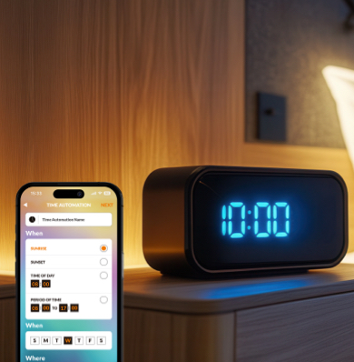 Schedule your lights to gently wake you up in the morning, or for added security, use timers to make it look like someone is home even when you’re away.