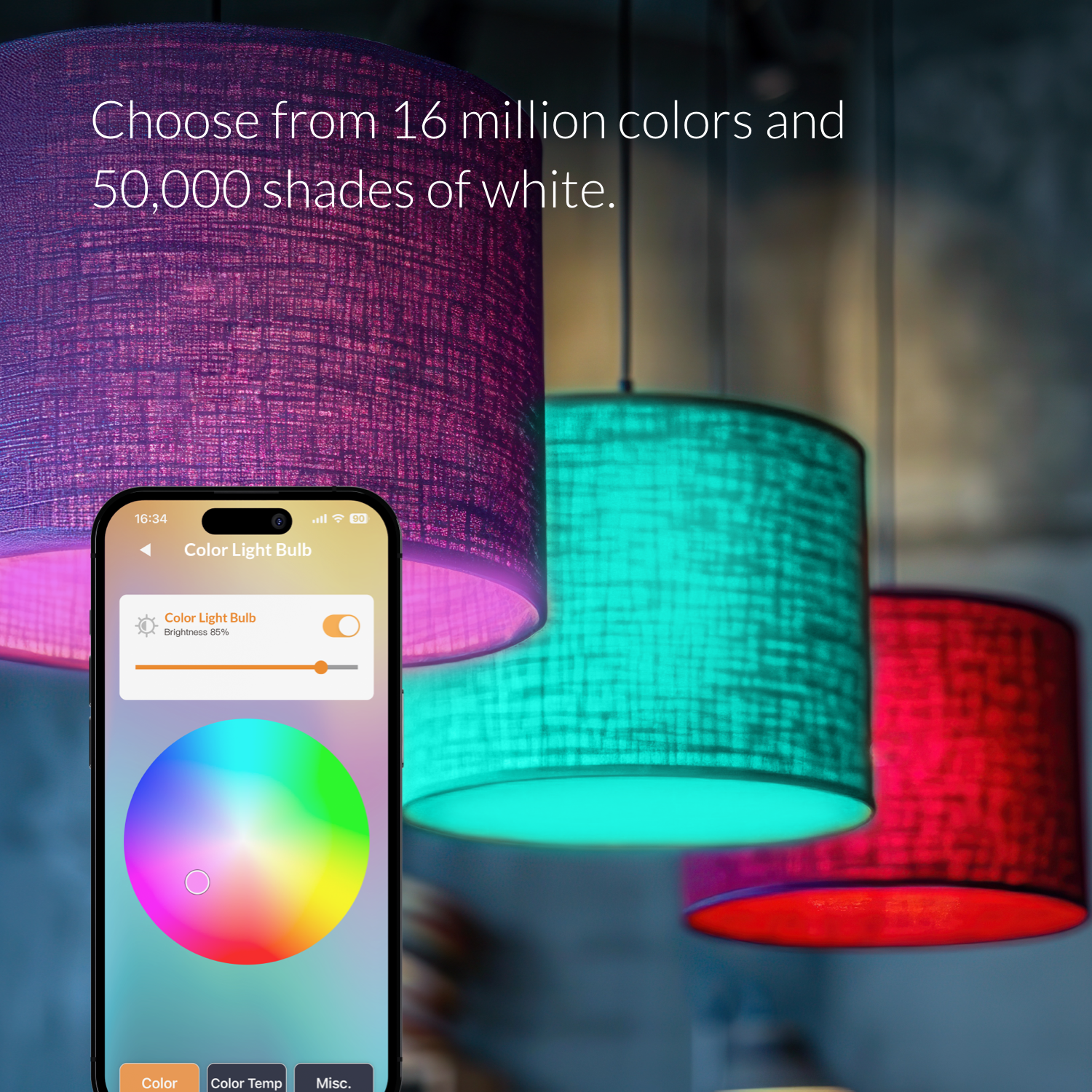- Choose from 16 million colors to set the perfect mood.
