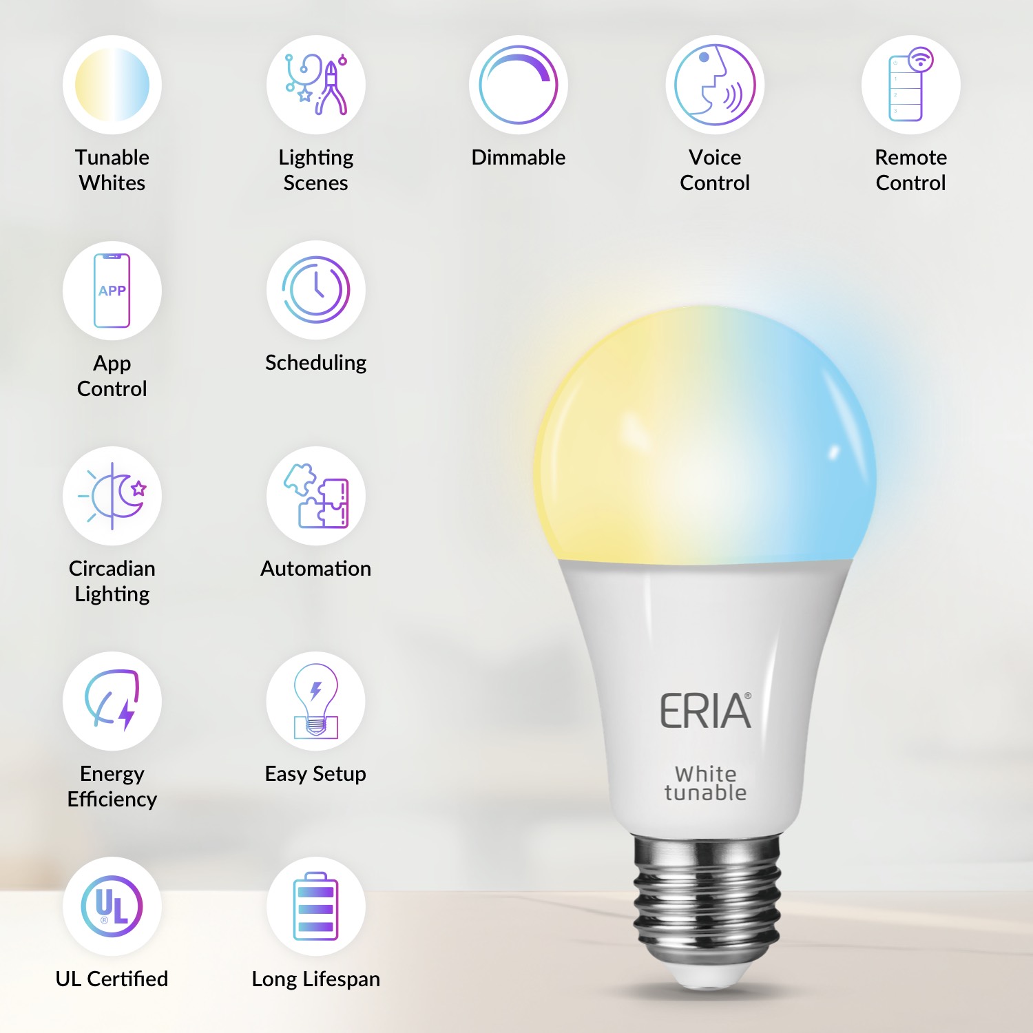 Pair your bulb with the ERIA Hub and App to access the complete smart lighting experience. Control your lights wirelessly, personalize settings, and activate scenes instantly. Set timers, create automations, and let your lighting adapt naturally to your daily routine. Whether you’re home or away, enjoy smarter control, improved energy savings, and enhanced comfort.