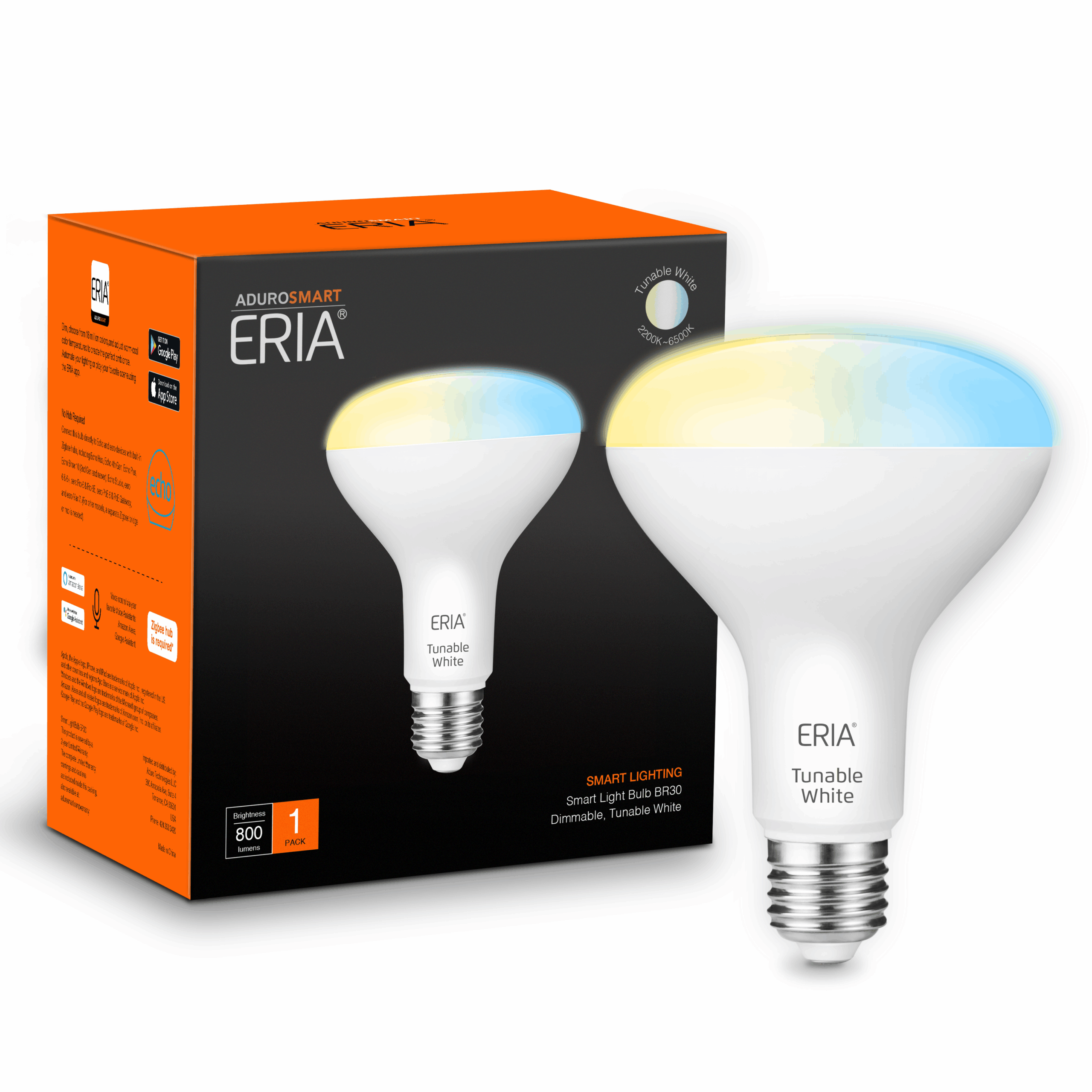 Easily screw the ERIA smart bulb into your existing E26 lamp socket, wirelessly pair it with the ERIA hub or any compatible hub, and enjoy enhanced wireless control of your lighting.