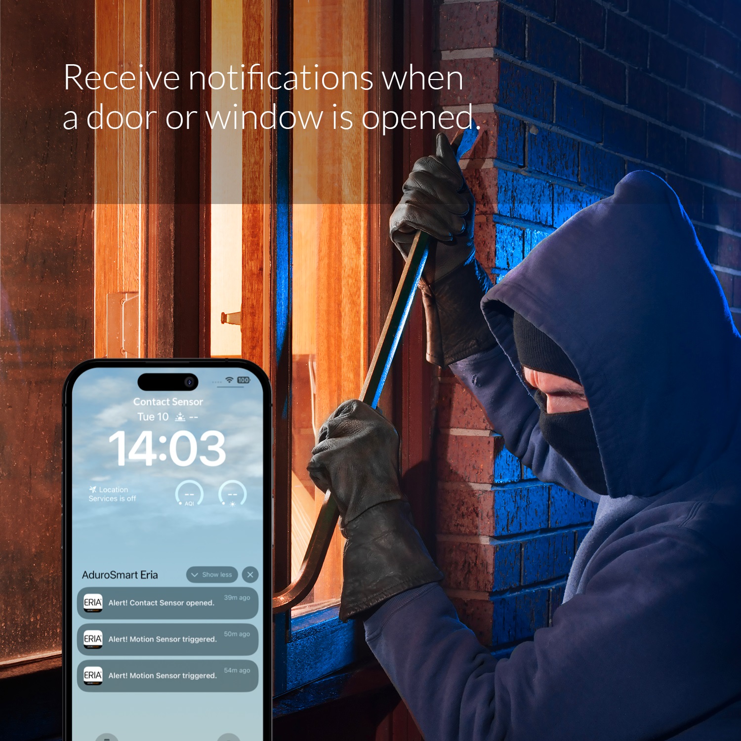 Imagine knowing instantly when a door or window opens in your home - the ERIA Contact Sensor makes it easy. Simply attach it to any flat surface, and it blends seamlessly into your decor - no wiring needed! Enjoy the peace of mind that comes with knowing your home is safe and secure, anywhere you are. Experience the perfect combination of monitoring, security, and convenience.