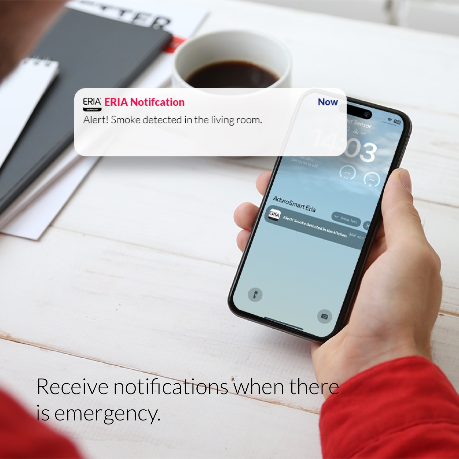 When smoke is detected, the ERIA Wireless Smoke Detector responds immediately with a loud and clear 85 dB siren, providing a strong audible alert throughout your home. At the same time, instant notifications are sent to your smartphone, helping you stay informed and react quickly. Designed for reliable smoke detection, it delivers timely alerts to support effective response and improve overall home safety.